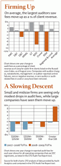 “Only three of the top eight audit firms showed a drop in fees charged as a percentage of client revenue in 2009,” CFO says, compared with a dramatic drop from 2007 to 2008 for all but Crowe among the top eight firms.