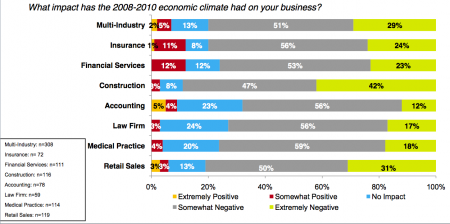 In other highloights of the survey, while most small businesses are feeling the affects of the recession, accounting firms, a primary distribution channel for ADP, are faring better than most other industries.