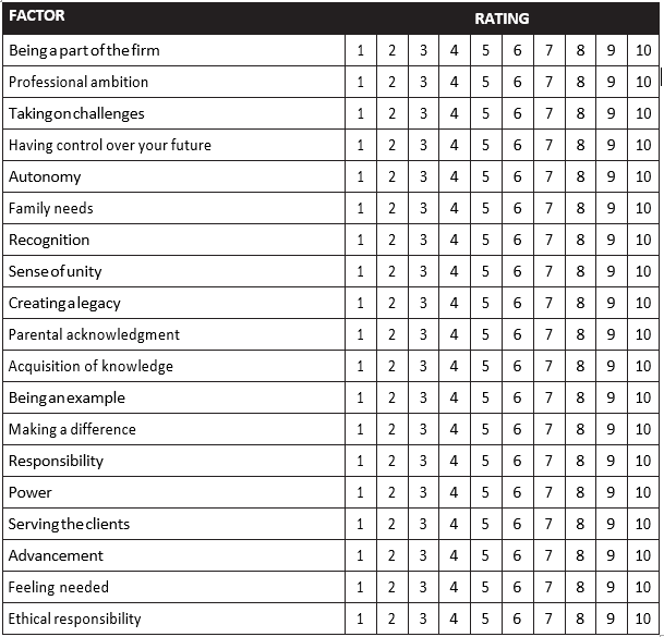 Which of these factors below on a scale of 1-10 (1 = not important at all, 10 = vital) truly gets you out of bed each morning on a consistent basis?