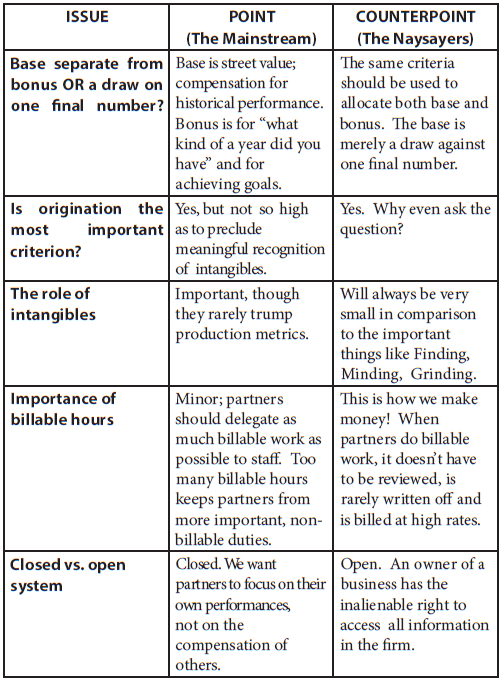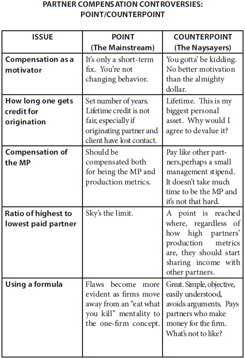 MORE ON PARTNER COMPENSATION: Why Compensation and Buyout Plans Must Be Synchronized | When Partner Vacation Becomes Excessive | Management Stipends: Who, How and Why | Paying Part-Time Partners