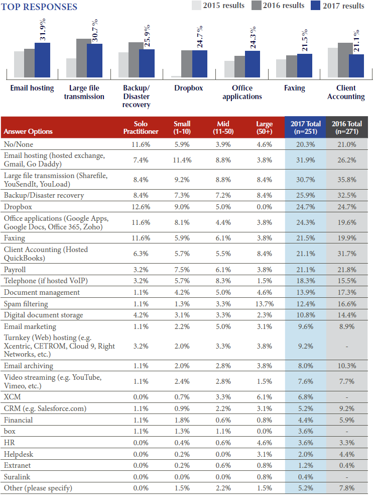 Q: Does your firm use any SERVICE that could be defined as “cloud” computing – i.e. hosted software/server or hosted communications? (Select all that apply.)