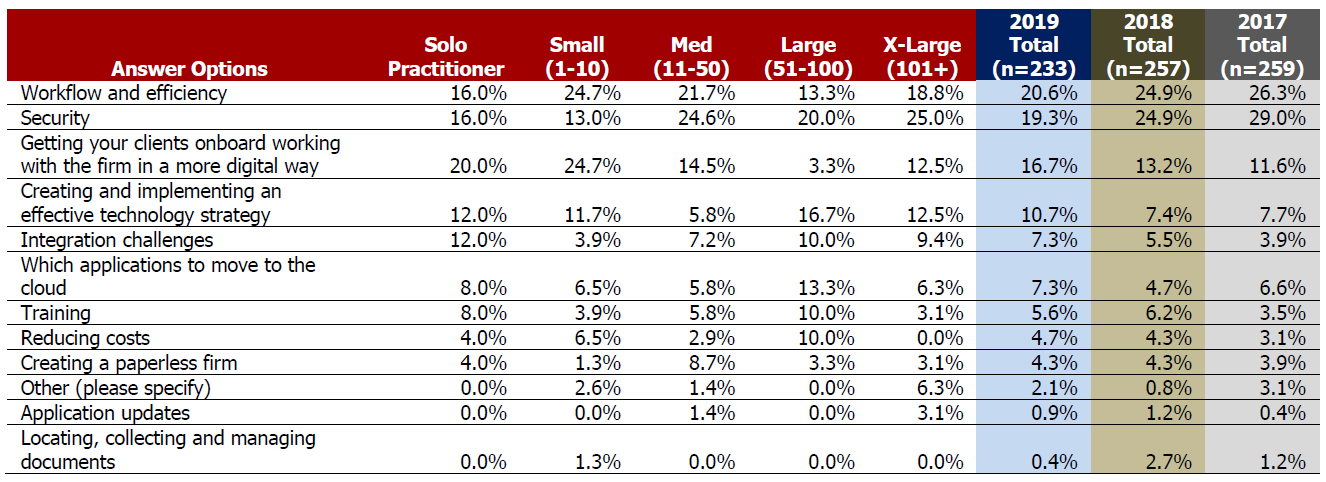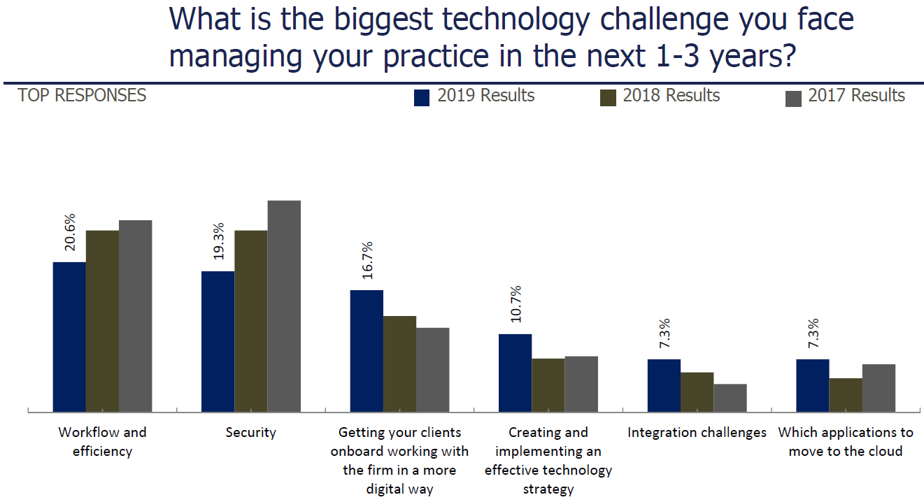 Answers are below. For more breakout stats and thought leadership, see the Accounting Firm Operations and Technology Survey.