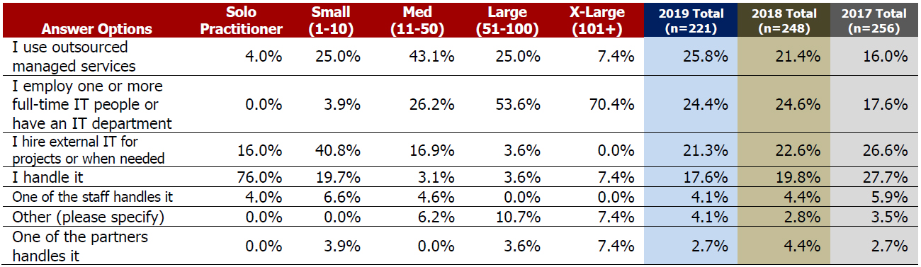 Answers are below. For more breakout stats and thought leadership, see the Accounting Firm Operations and Technology Survey.