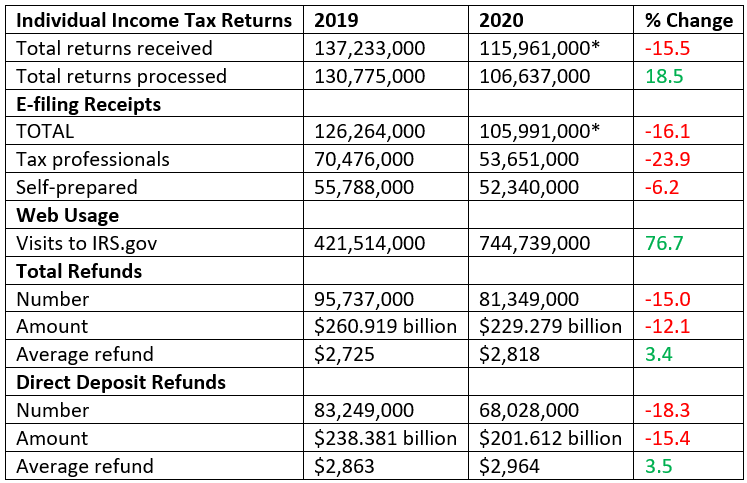 * Total includes returns filed to obtain Economic Impact Payments by those who would not usually file income tax returns.