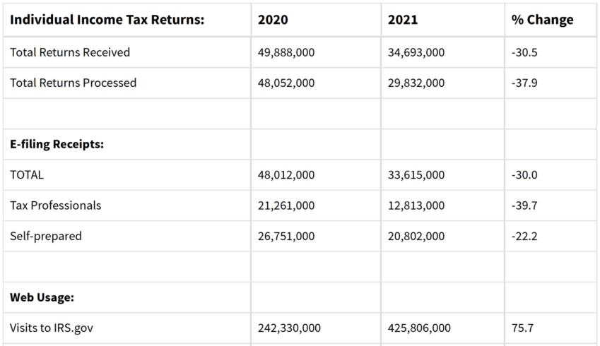 One thing is very clear in the data. Self-prepared returns continue to far outpace professionally prepared returns. Through the 12th, Electronically filed, professionally prepared returns were down 19.4% this year versus self-prepared returns down only 4.9%.