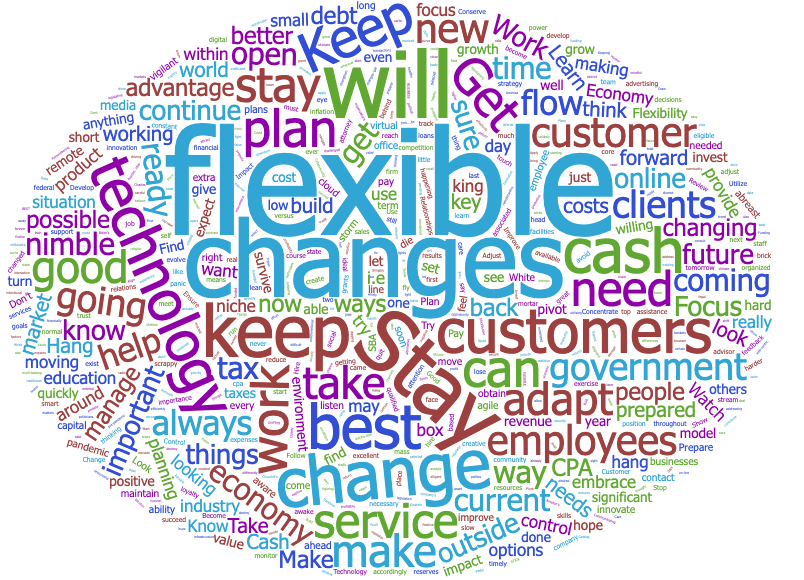 - Mike Kridel, the @ForensicCPA on Twitter, says, “Focus on cash and credit management. Become more web-centric and invest in productive tech stacks. Value employees more and don’t prejudge loyalty.”