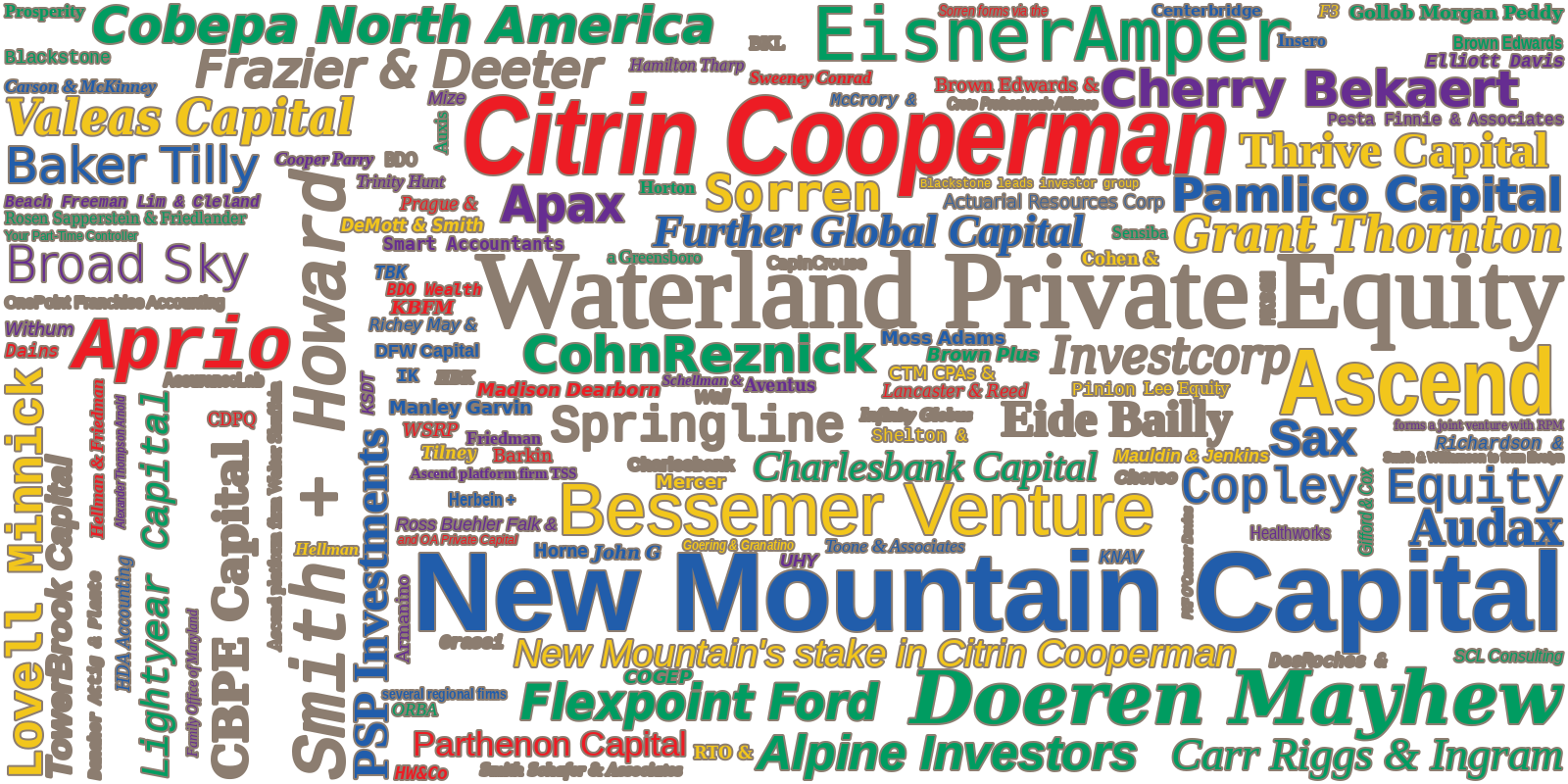 - January 2025 – Blackstone (New York, N.Y.) leads investor group to acquire New Mountain’s stake in Citrin Cooperman (New York, N.Y.), the first PE-to-PE ownership transfer in a Top 25 firm (widely reported valuation $2 B).