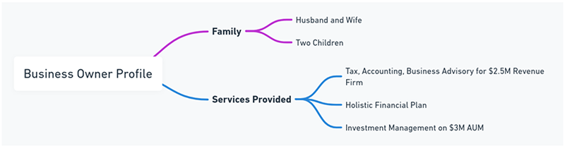 Let’s say you are working with a $2.5 million family-owned manufacturing business and it pays your firm $2,500 per month ($30,000 per year) for tax, accounting and business advisory services. So, you already have intimate knowledge of the owner’s primary source of wealth. Why not add holistic financial planning and wealth management as your Plus offering? Here’s how it works:
