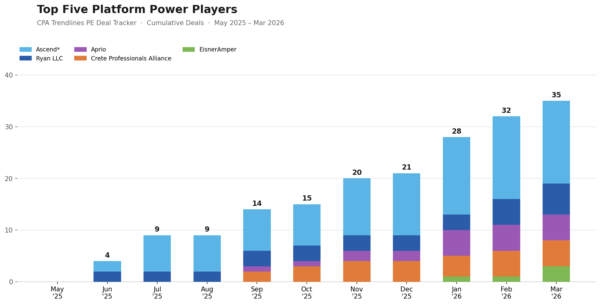 CPA Trendlines PE Deal Tracker: Mega-aggregators dominate the money flow as the race tightens between Ascend, Aprio, Crete, Eisner and Ryan.