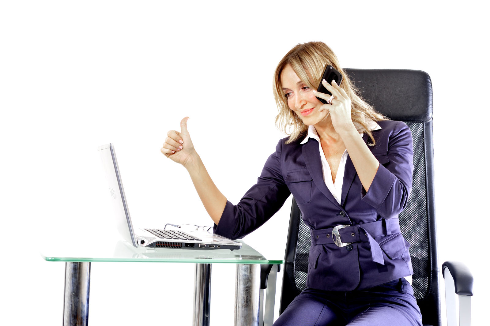 Businesswoman working on laptop giving thumbs up signAre you ready to say yes?