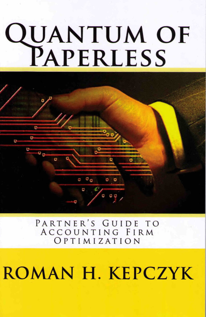 “Search for the ideal IT consultant for the CPA profession no longer. Roman Kepczyk’s new book, Quantum of Paperless, solidifies his reputation as the preeminent CPA firm IT expert in the country, further building on what the CPA profession has known for 20 years. He’s a CPA so he knows our business. His book shares the hands-on experience obtained from working exclusively with CPA firms from coast to coast. His writing is easy to understand (i.e., no techno-garble), yet hard-hitting when it needs to be. Roman has always been an excellent teacher and this makes his book a joy to read. Quite simply, Quantum of Paperless is a must-read for CPA firms from sole practitioners to huge firms. It packs quite a wallop – 32 mission critical suggestions for running an efficient, state-of-the-art IT function.” – Marc Rosenberg
