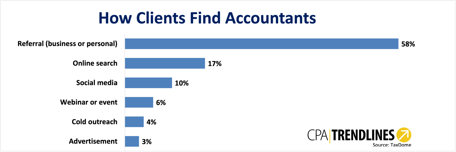Brands matter: Clients rely on business or personal referrals to find their accountants.